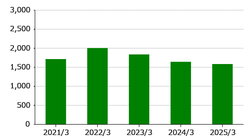 | 電子材料事業 | 1,706 | 1,997 | 1,830 | 1,635 | 1,574 |